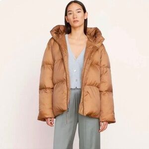 NEW! VINCE Hooded Puffer Jacket Mocha Women SZ Large