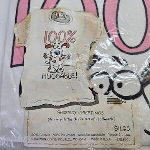 Vintage Hallmark Shoebox Greetings t-shirt. Solid white with 100% Huggable design. Short sleeves. Crew neckline.