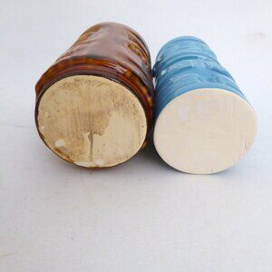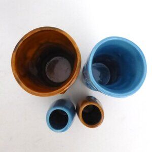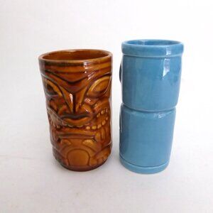 NEW VINTAGE MAORI MOAI TOTEM BLUE & BROWN CERAMIC TIKI MUG & SHOT LOT OF 4