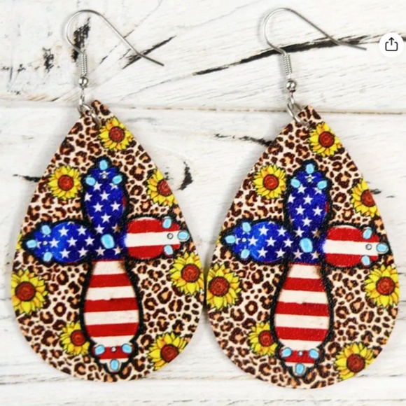 NEW VINTAGE STYLE BOHO ANIMAL PRINT SUNFLOWERS AMERICAN FLAG CROSS EARRINGS