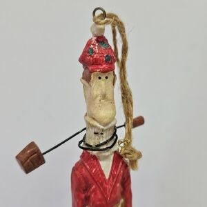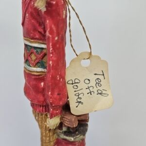 Vintage "Tee'd Off Golfer" holiday ornament. Measures about 7.5" tall not including hanging loop. Perfect holiday gift for a golf enthusiast. Purchased from an estate and no visible makers mark. Note that paint is meant to look distressed in areas. Brand new with original hang tag and smoke-free home.