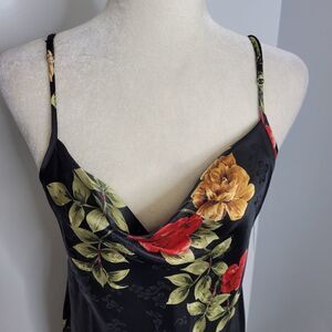 Vintage 1990s Jones New York new old stock rose floral full length nightgown chemise and matching robe. Gown is NWT and a size XL, but fits smaller. Robe is not NWT and marked a M but adjustable due to the ties. Length of robe taken from armpit to hem. Straps are adjustable. Polyester.