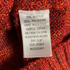 NEW Womens v-neck pullover long sleeve sweater in a sienna maroon with multi accent colors mixed into knit pattern — pretty cable knit pattern at split V neckline Sz L