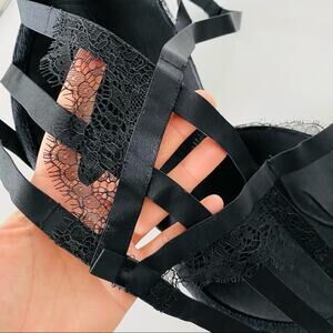 NEW VS VICTORIAS SECRET Black Lace Strappy Elastic Front Clasp Push Up Bra 32D