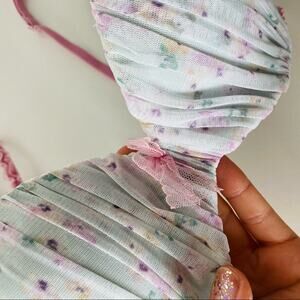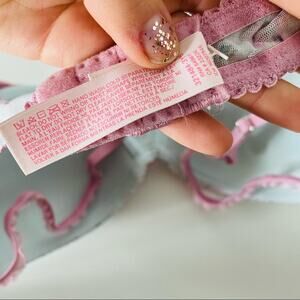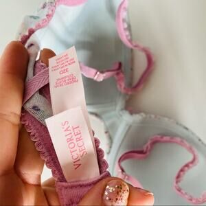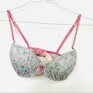 NEW VS VICTORIAS SECRET Blue Mesh Lavender Floral Ruffle Padded Demi Bra 32D