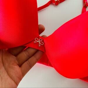 NEW VS VICTORIAS SECRET Hot Neon Pink Charm Plunge Underwire Padded Bra 34C