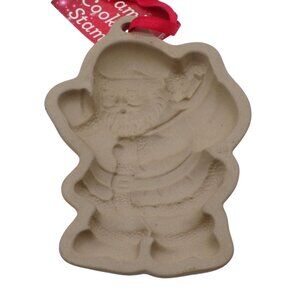 NEW VTG Ceramic Santa Claus Cookie Stamp Christmas Cookie Mold Baking Tool 6"
