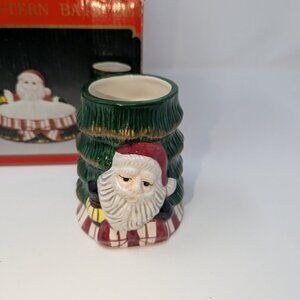 NEW VTG World Bazaars Hand Painted Santa With Lantern 3 piece Ceramic Bath Set