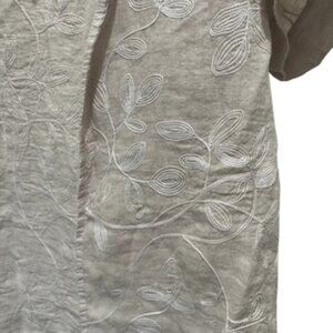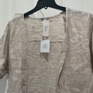 NEW Valentina Naldi Linen Shirt Open Front Top Beige Women’s OSFA Embroidered