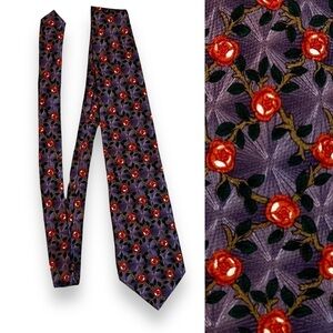 NEW Valentino 100% Silk Tie Red Rose Floral Print Handmade in Italy Luxury
