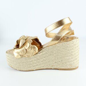 NEW Valentino Garavani Atelier 03 Rose Metallic Leather Espadrilles Sandals