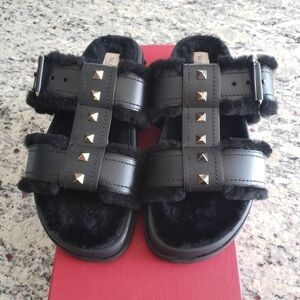NEW Valentino Rockstud Slides with Real Shearling size 36