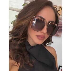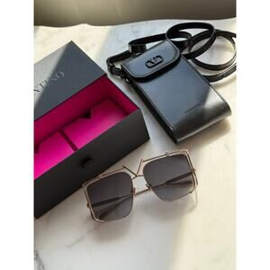 NEW Valentino VLS116-A Gold Grey Oversized Square Sunglasses
