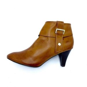 Valerie Stevens Women's Ankle Boots Booties Tan Faux Leather Zip Buckle 8.5 M New