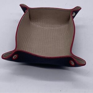 -NEW Valet tray HAND MADE pebble grain leather, coin & key tray 6x4”