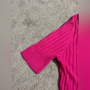 Stylish fuchsia cardigan with ribbed texture. Features a classic design.