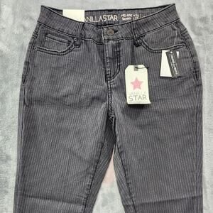 NEW Vanilla Star Jeans Womens 3 Juniors Gray Pin Striped Mid Rise Skinny Ankle Stretch Casual Preppy