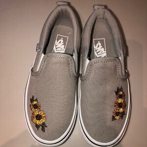 NEW Vans Asher Slip On Sneaker Kids SZ 13 Gray w/ Flowers