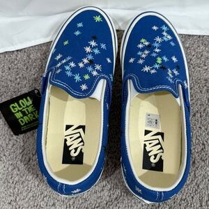 NEW Vans Blue KiraKira Slip On Glow in Dark, AOI Better Gift Shop Collab M6 W7.5