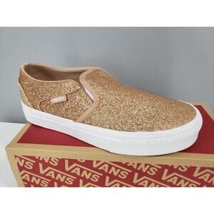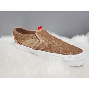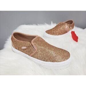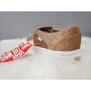 NEW Vans Rose Gold Pink Glitter Sidewall Size 5 Women's Slip On White VN05HTTGLD