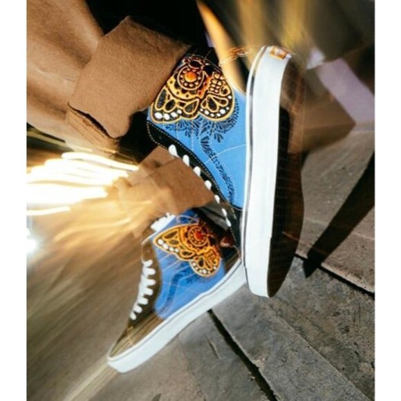 Celebrate the past with the Dia De Los Muertos Sk8-Hi Skate Shoe by Vans! These stand-out sneakers showcase sturdy canvas and suede uppers with beautiful gold butterfly embroidery, signature Sidestripeβ’ detail, and waffle rubber outsole for flexible traction.