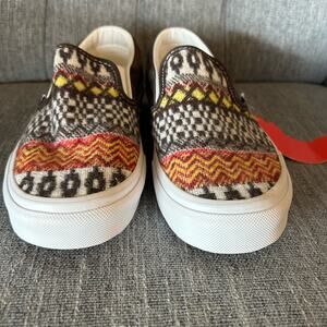 NEW Vans Womens Classic Slip On Fair Isle Brown White Low Print Sneaker Shoes 6