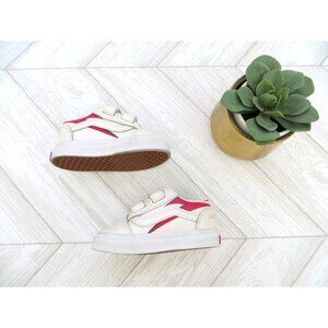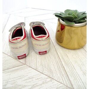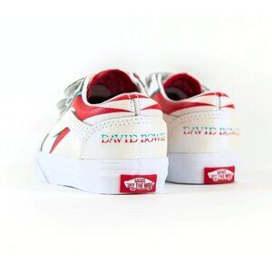 Description: These are genuine Toddler Vans x David Bowie Aladdin Sane Old Skool Shoes. The sneakers feature iconic low-top, adjustable dual velcro closure, leather upper, David Bowie branding on heel tab, supportive padded collars, signature rubber waffle outsoles, imported.