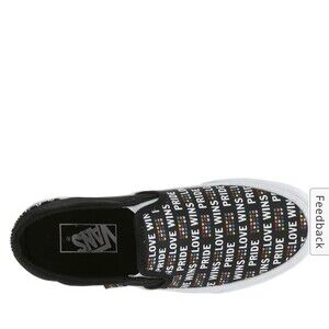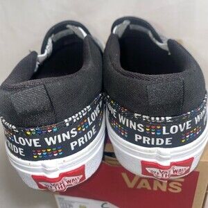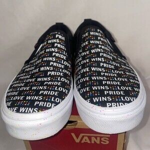 Super cute ! New rainbow pride hearts love live black vans Asher slip ons with glitter soles on white part