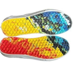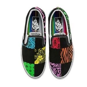 Vans slip-on sneakers, Crayola Vans, rare Vans, colorful Vans, patchwork Vans, limited edition Vans, streetwear, retro sneakers, streetwear, jungle shoes, vans