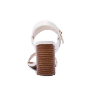 !! NEW !! Vegan Leather Ankle Strap Block Heels in White