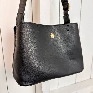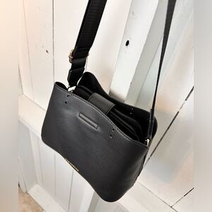 NEW Like Dreams Black Vegan Pebble Leather Mini Bucket Crossbody Thick Strap