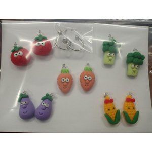 NEW Veggie Interchangeable Food Charm Earrings 5 Pairs in Set Stainless Steel
