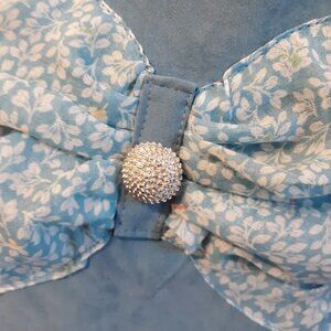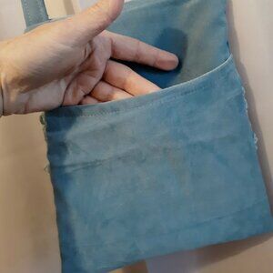 NEW Velvet texture Sueded Floral Bow Shoulder bag Purse Blue Cute Girlie Sling