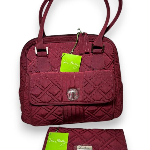 NEW Vera Bradley Raisin Matching Set Turn Lock Satchel Purse Trifold Wallet Gift