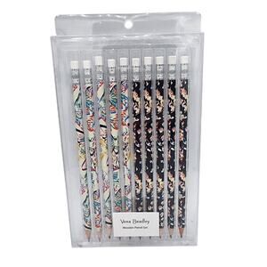 NEW Vera Bradley VB Assorted Wooden Writing Pencil Set of 10 White Black Design