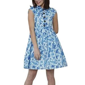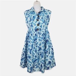 NEW Vero Moda Linen Floral Button Down A-line Mini Dress in Cool Blue Size XS