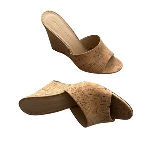 NEW Veronica Beard Dali Cork Wedge Sandal Mules 10.5 Neutral Minimalist