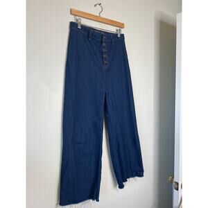 NEW Veronica Beard Grant Wide Leg High-Rise Cropped Denim Jeans Blue Size: 29