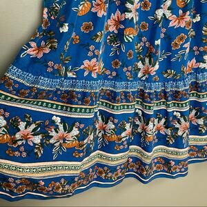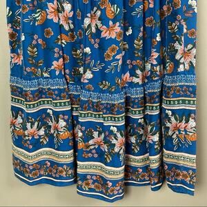 Veronica Beard blue teal floral maxi Skirt Size 4 in a prairie style. This is one of Veronica Beard's better styles. Super pretty with all of the details. Gorgeous shade of blue with brown and peach colored flowers.
