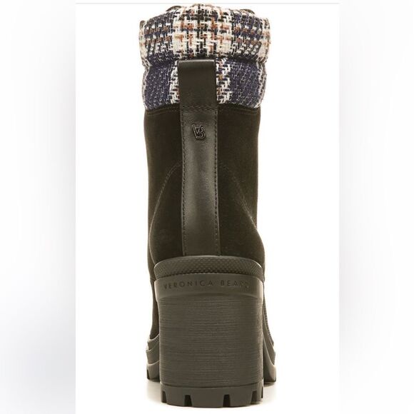 NEW Veronica Beard Westport Water Resistant Hiker Boots | Black Eclipse | Lug Sole & Plaid Cuff 🖤🩶