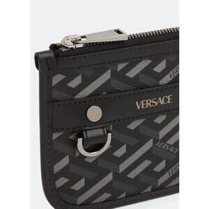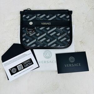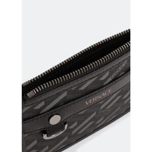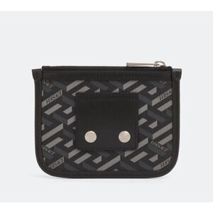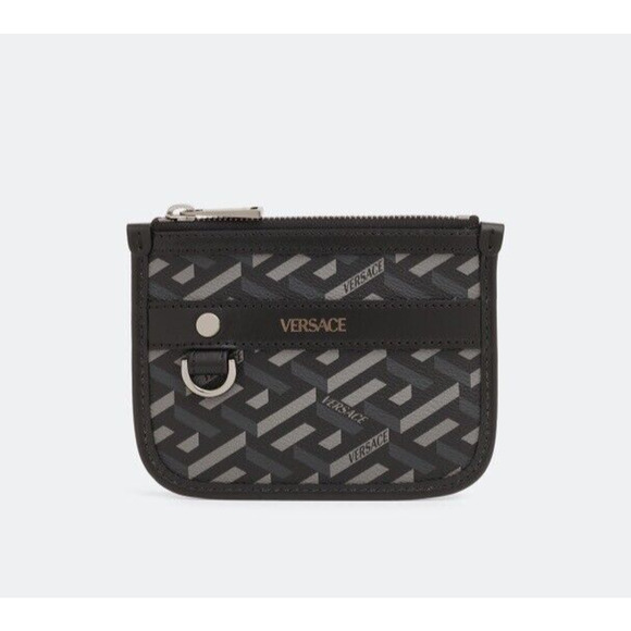 NEW Versace Mini Coin Pouch 5.5” x 4.5” La Greca Rectangular Modular Black Gray