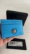 Chic Versace card holder in sky blue. Features iconic gold Medusa emblem. Ideal for stylish organization. New in box! Retails for $325