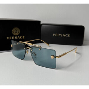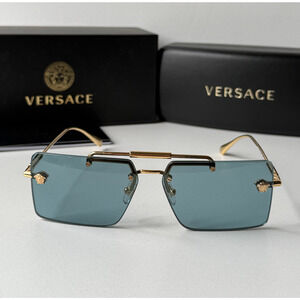 NEW Versace VE2245 Gold Blue Medusa Aviator Sunglasses