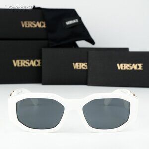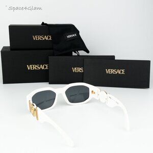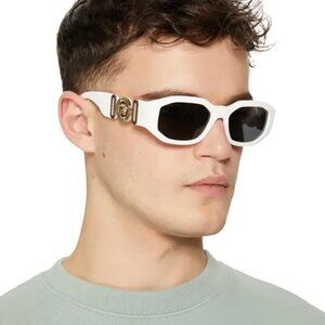 BRAND NEW Versace VE4361 401/87 Medusa Biggie White Dark Grey Rectangle Unisex Sunglasses