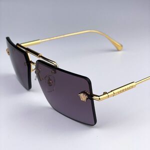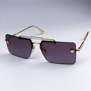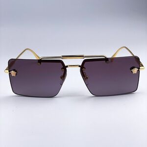 NEW Versace VE2245 10028H Gold Violet Gradient Rimless Rectangle Unisex Sunglasses