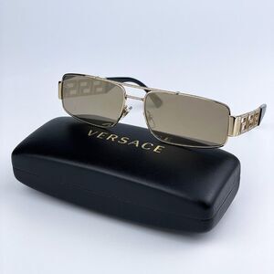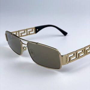 NEW Versace VE2257 10025A Gold Light Brown Mirror Metal Pilot Unisex Sunglasses