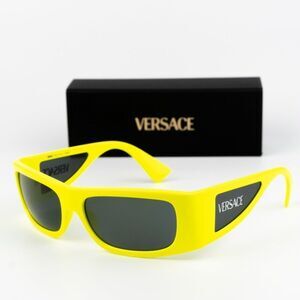 NEW Versace VE4482 544987 Yellow Fluo Dark Grey Rectangular Unisex Sunglasses