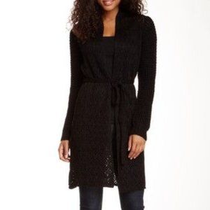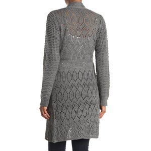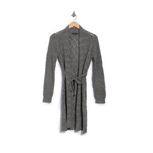 NEW Vertigo Women Wool Crochet Belted Long Sleeve Duster Cardigan Robe Sweater
