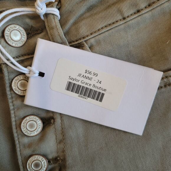 NEW Vervet Jeanne High Rise Stretch Slim Straight Jeans 24 Distressed Green
