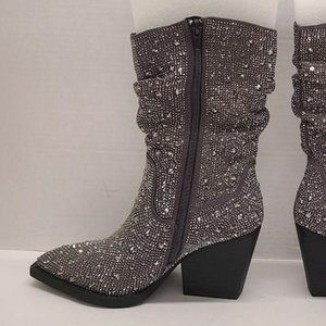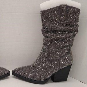 The Very G Kady Slouch Grey Crystal Boot is perfect for anyone looking to make a fashion statement. The slouch boot style is all the rage, and this design has a unique blend of eye-catching crystals and chic grey color that make these boots stand out from the crowd.